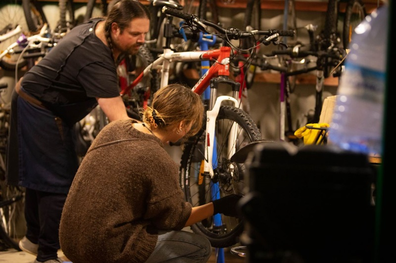 Bring along your bike and learn how to fix it, or work on one of ours.